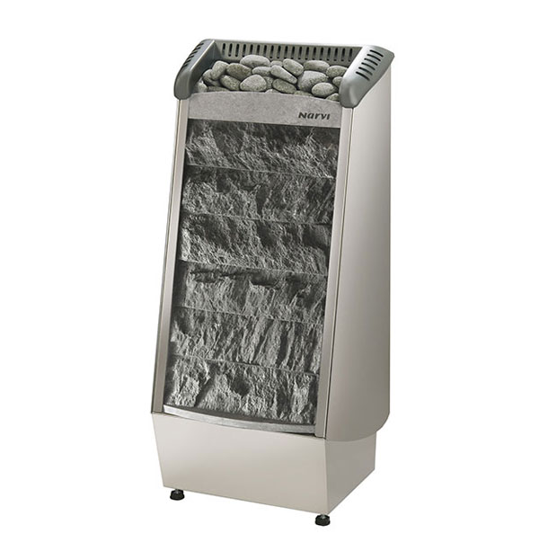 Narvi Rocky’nin yeni tasarımı, saunaya modern bir tarz katar. Isıtıcı yüksek kaliteli çelikten ve taşlar Finlandiya’nın sabun taşından yapılmıştır.